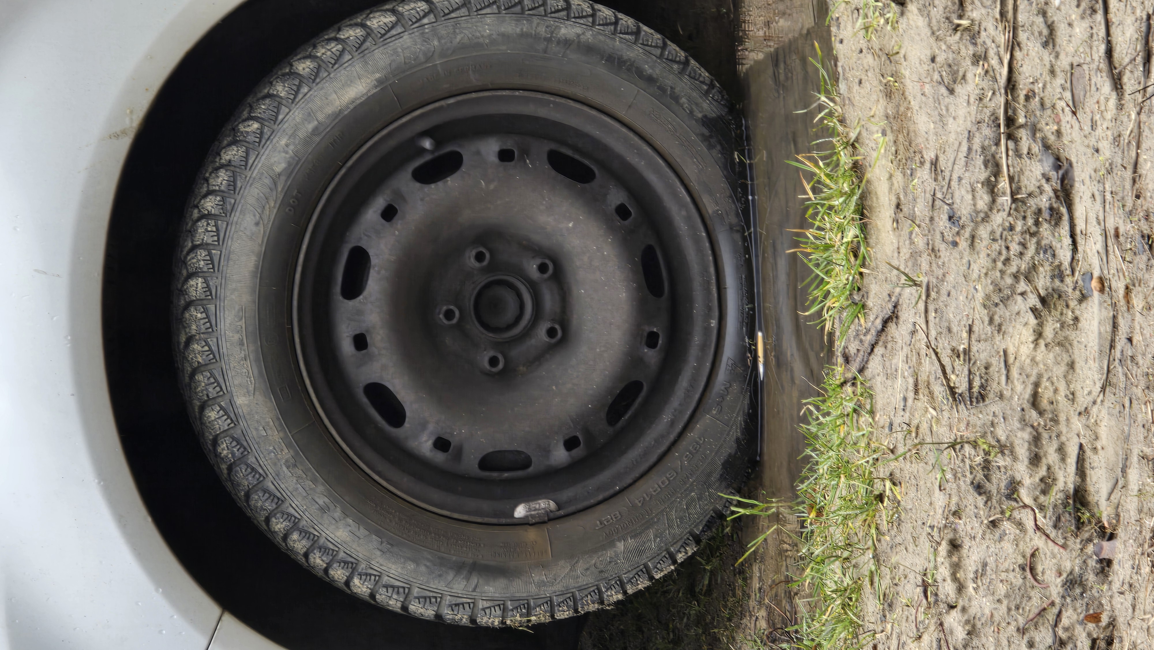 there is a tire that is sitting on the side of a road