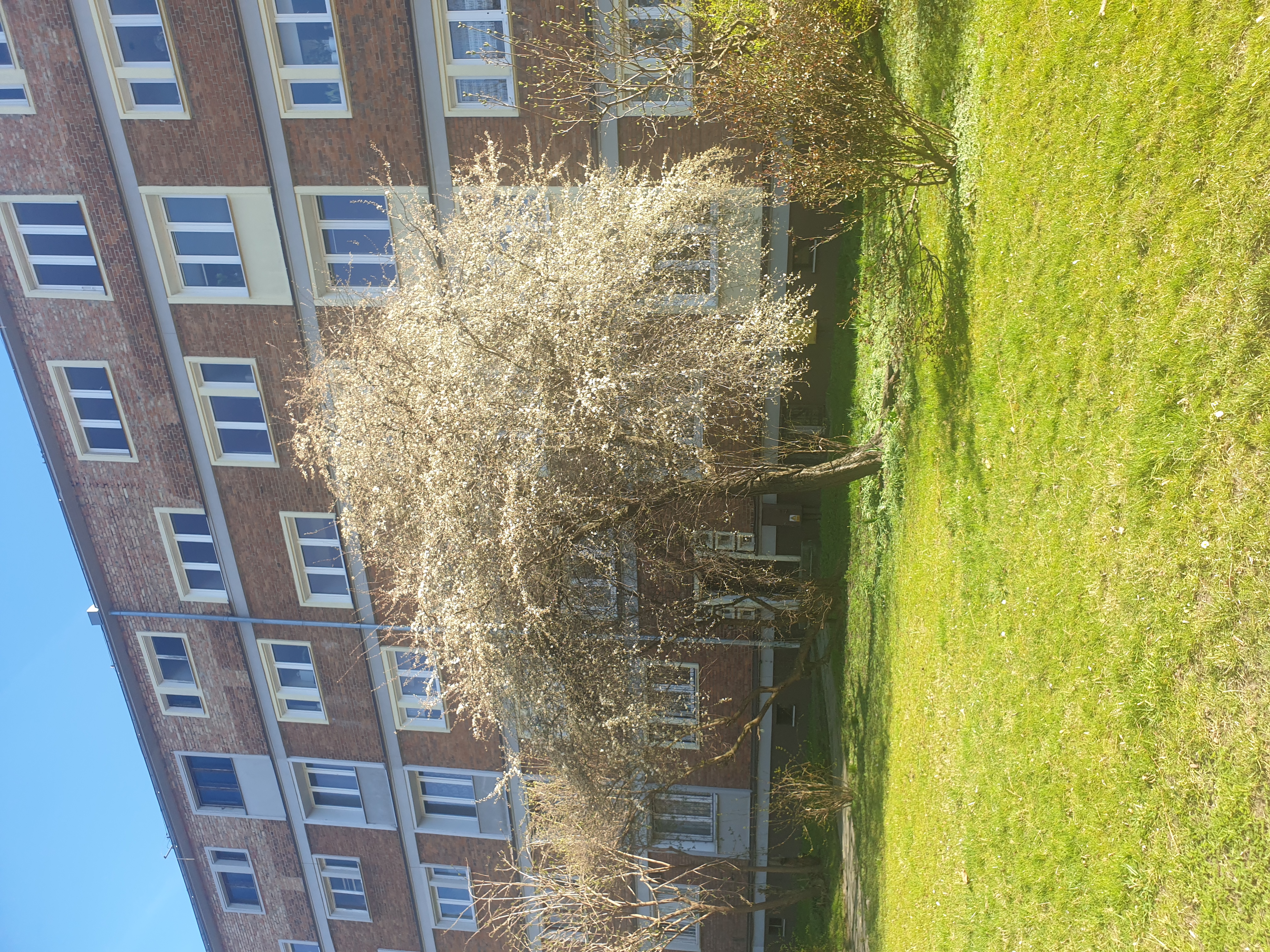a tree in front of a building