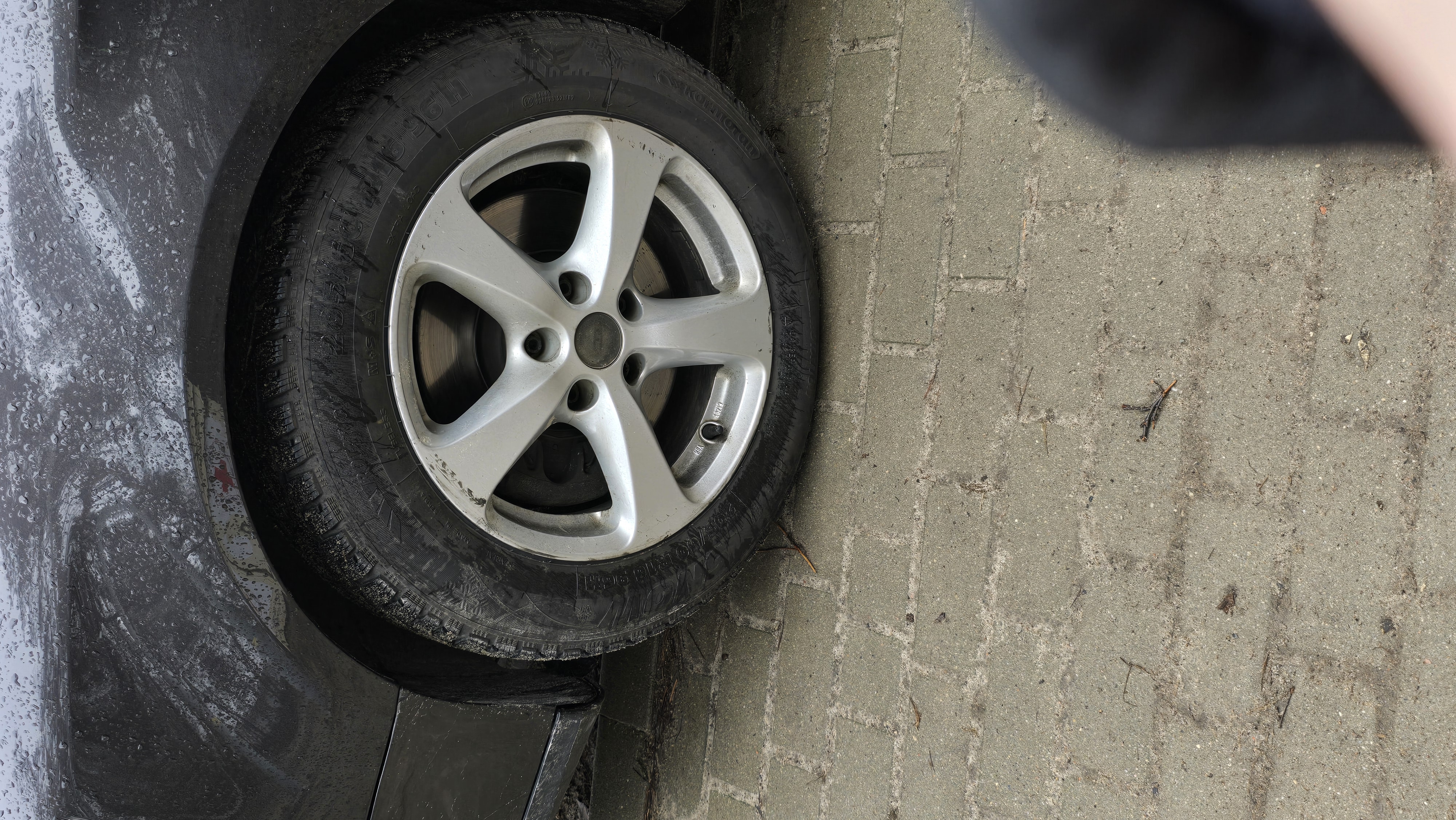 there is a tire that is sitting on the side of a wall