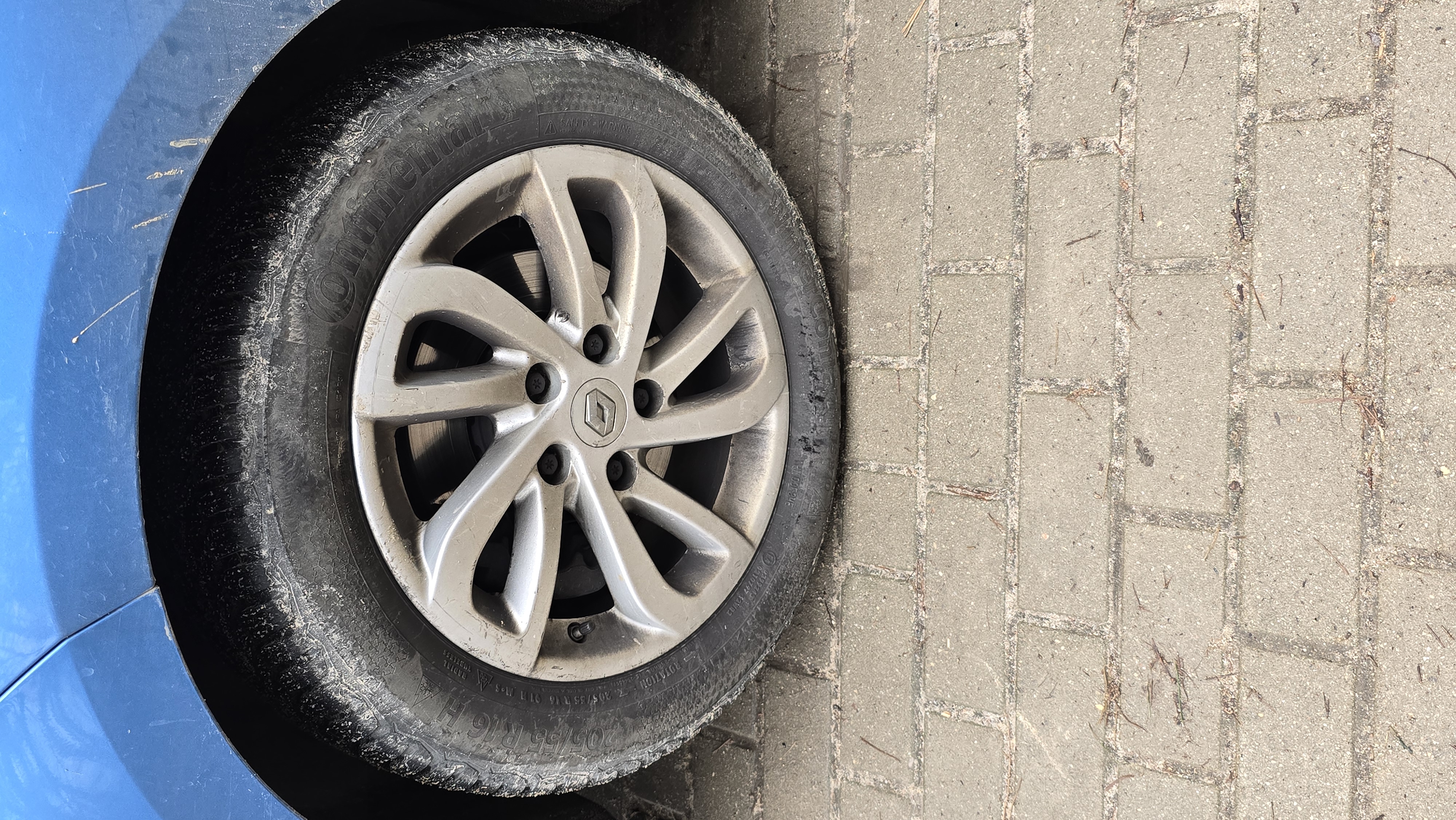 a close up of a car tire on a brick wall