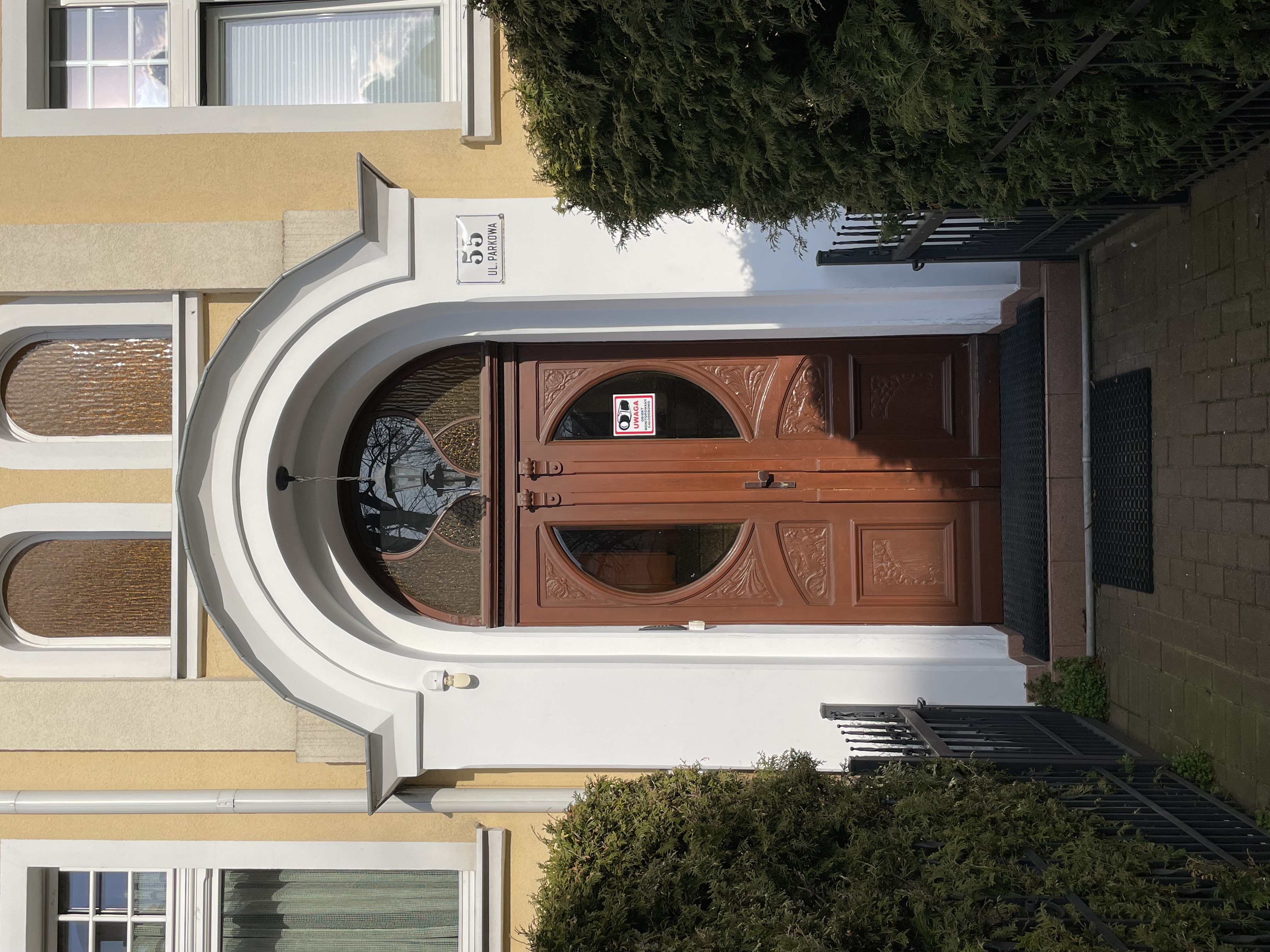 | bc.photo.description | A large brown door sitting next to a tall building. | |