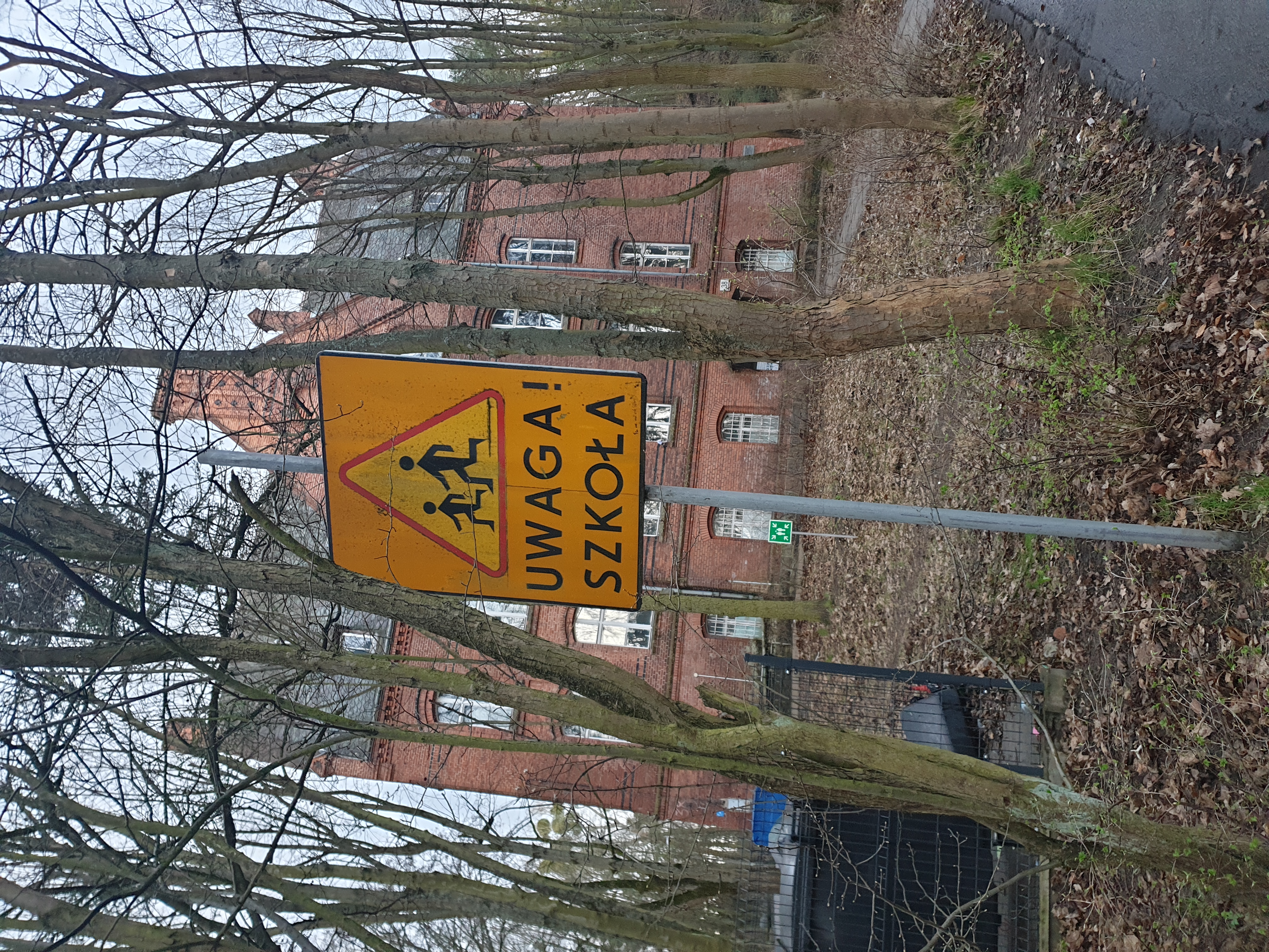 | bc.photo.improved | there is a sign that says Uwaga Szkoła on it in front of a building | en |