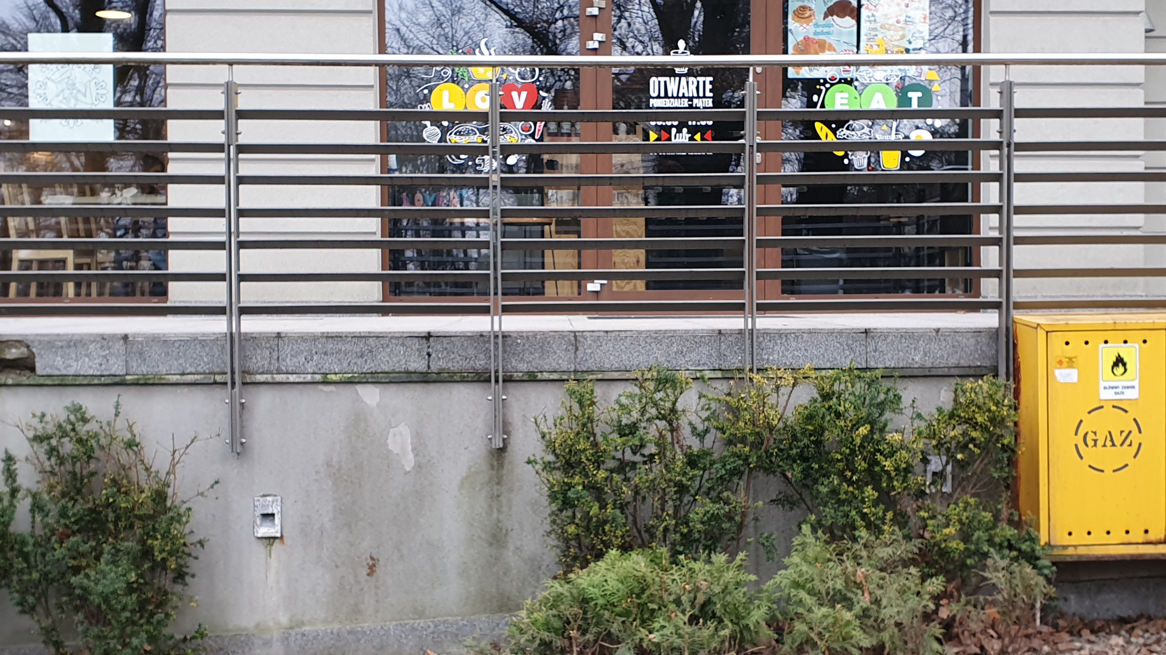 | bc.photo.description | A photography of a yellow box on the fence in front of a building. | |