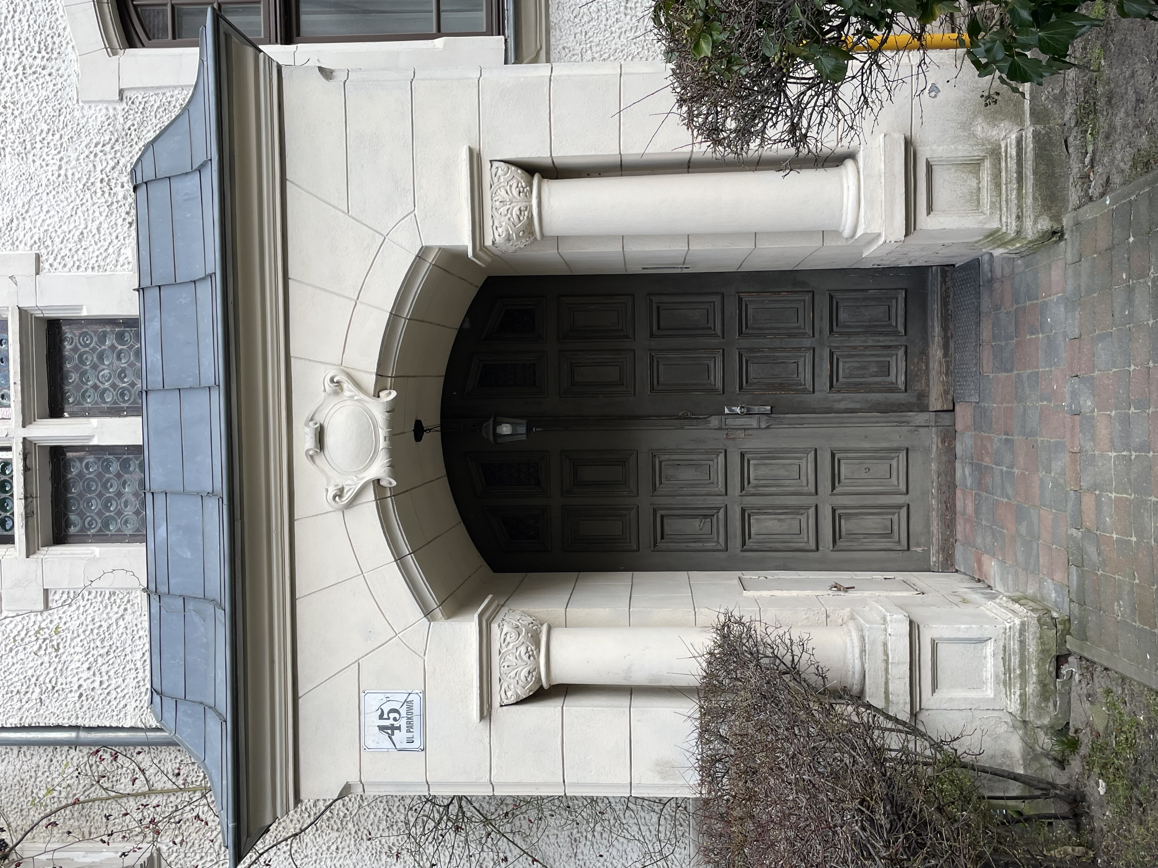 | bc.photo.improved | A faded green door with decorative squares and a jamb with columns. | |